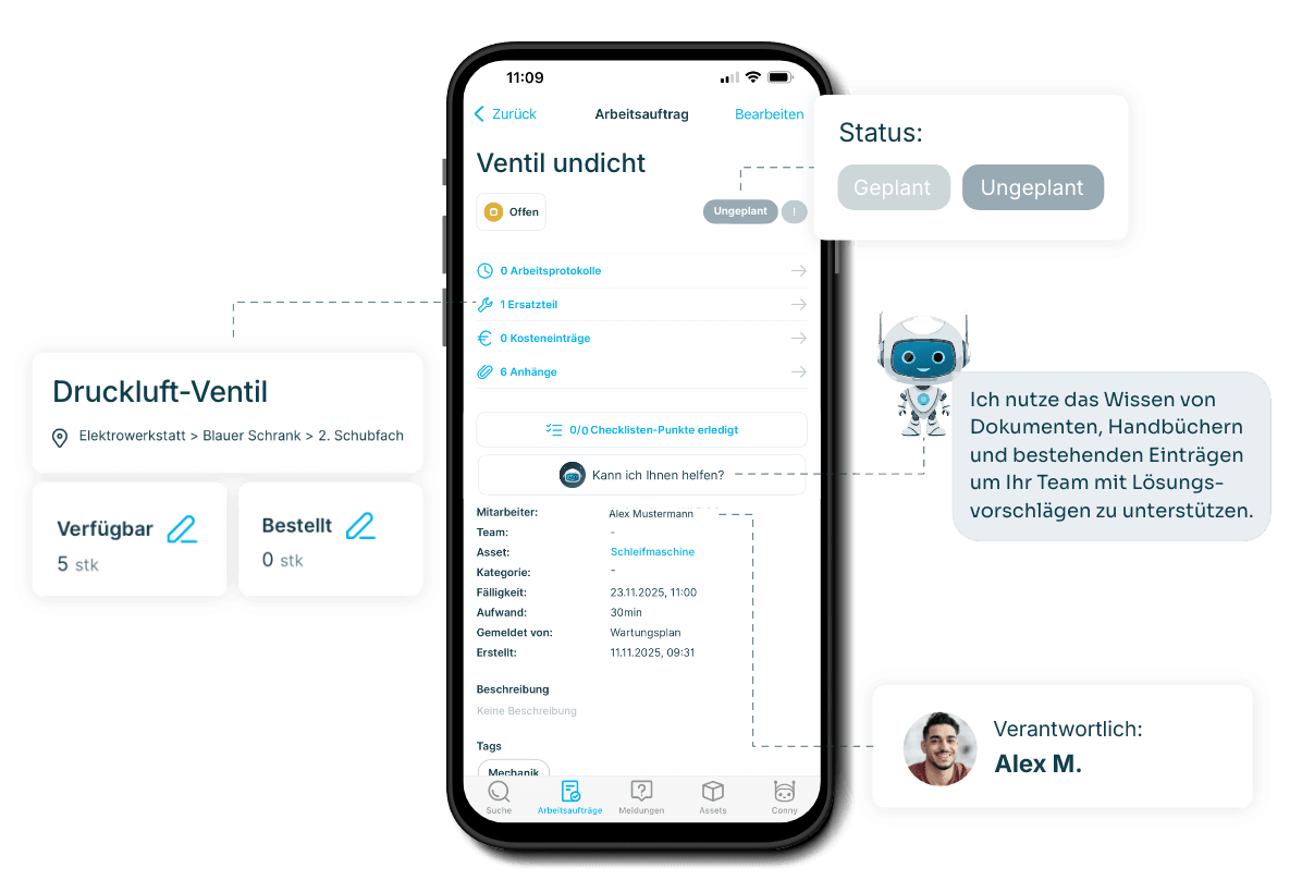 Funktionen speziell für die industrielle Instandhaltung